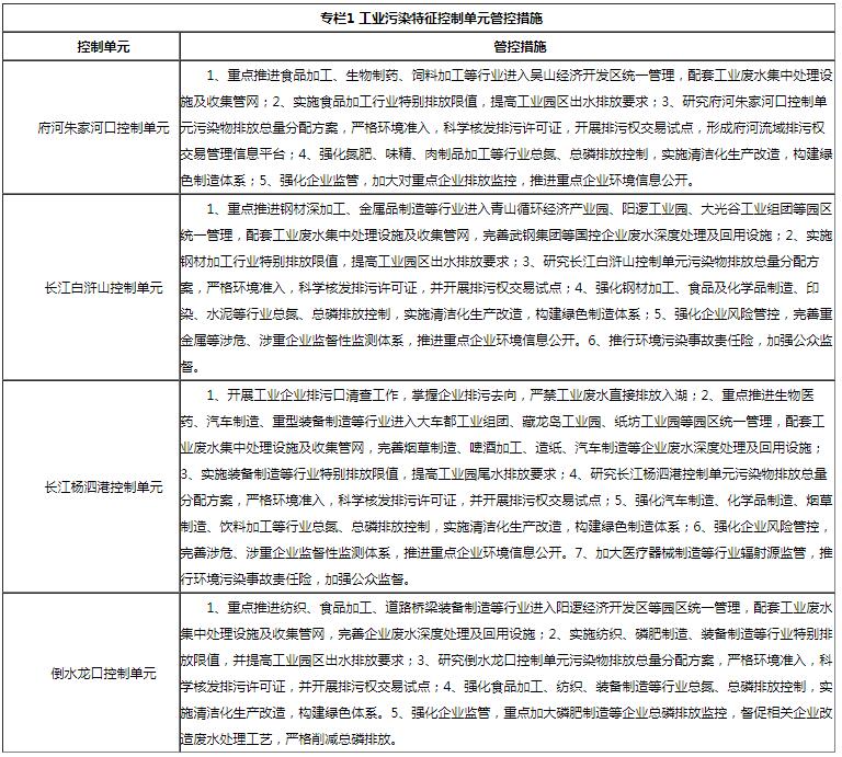 推進工業(yè)企業(yè)入園管理。完善工業(yè)集聚區(qū)污水收集處理設(shè)施和在線監(jiān)控設(shè)施。針對長江、漢江、府河等重點流域排放廢水的工業(yè)企業(yè),制定并執(zhí)行污染物特別排放限值,出水接入城鎮(zhèn)污水管網(wǎng)的應(yīng)達到《污水綜合排放標準》一級B要求,直接排入水環(huán)境的工業(yè)園區(qū)應(yīng)加強中水回用,廢水排放執(zhí)行《城鎮(zhèn)污水處理廠污染物排放標準》表1中一級A排放標準。