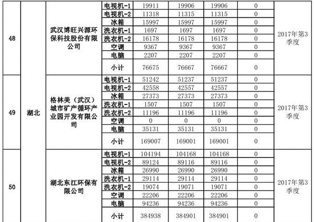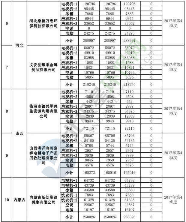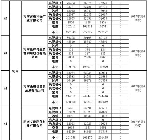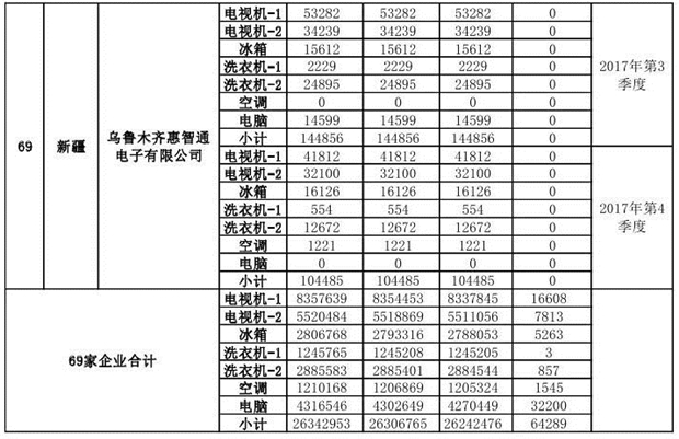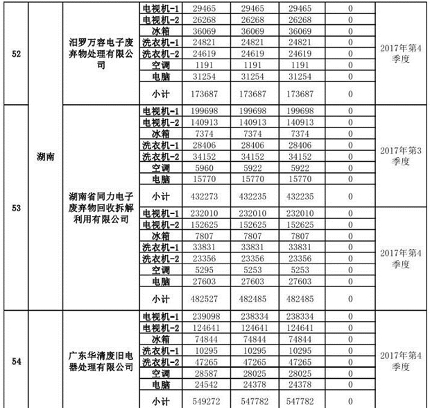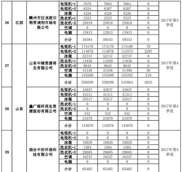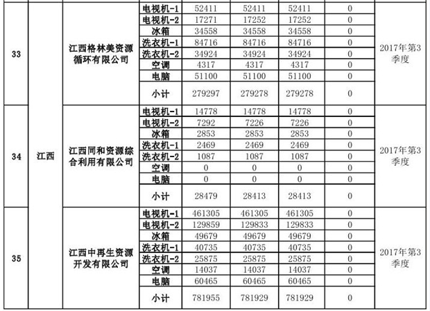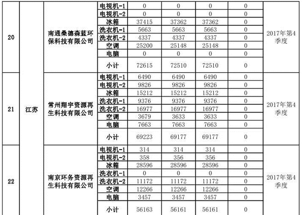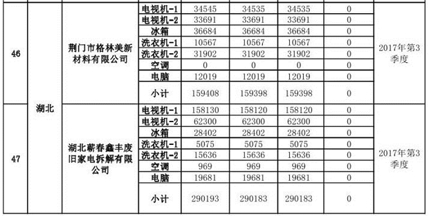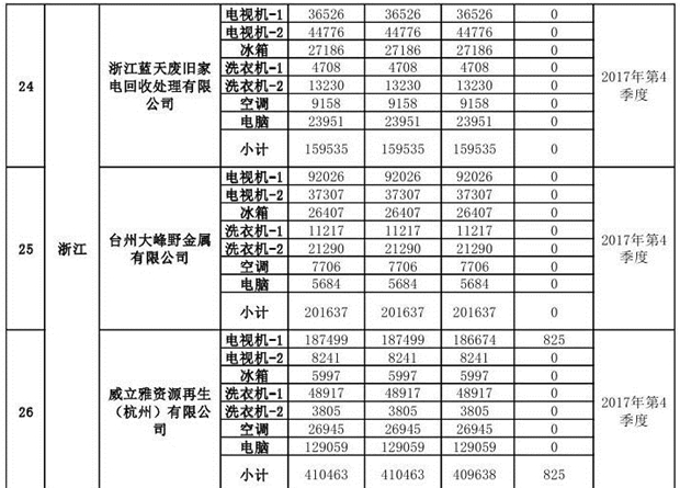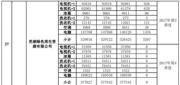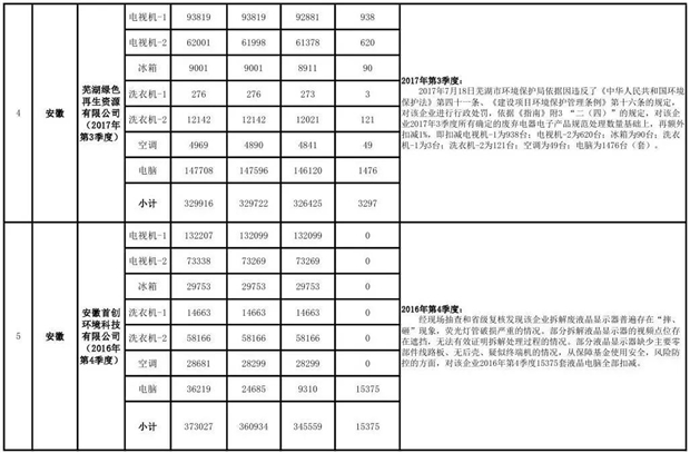 上述69家通過(guò)技術(shù)復(fù)核的企業(yè)申請(qǐng)廢電器規(guī)范拆解處理數(shù)量為26342953 臺(tái)(套);經(jīng)省級(jí)環(huán)保部門審核認(rèn)定廢電器規(guī)范拆解處理數(shù)量為26306765臺(tái)(套),扣減36188臺(tái)(套);部固管中心通過(guò)技術(shù)復(fù)核擬確認(rèn)廢電器規(guī)范拆解處理數(shù)量為26242476臺(tái)(套),扣減64289臺(tái)(套)(詳見(jiàn)附件)。