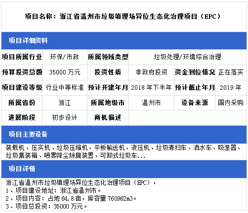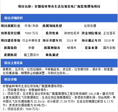 中項網(wǎng)獨家授權(quán)北極星固廢網(wǎng)發(fā)布最新垃圾處理項目(2018年10月22日更新),其中包括垃圾中轉(zhuǎn)站建設(shè)項目、垃圾發(fā)電廠配套填埋場項目、生活垃圾綜合處理項目等。具體內(nèi)容如下: