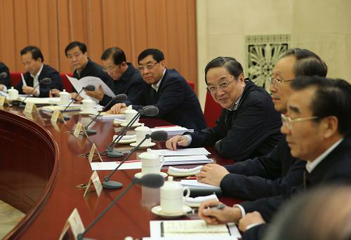 2014年10月30日,全國政協(xié)在北京召開雙周協(xié)商座談會(huì),就“利用水泥窯協(xié)同處置垃圾廢棄物”問題建言獻(xiàn)策。全國政協(xié)主席俞正聲主持會(huì)議并講話。新華社記者 劉衛(wèi)兵 攝
