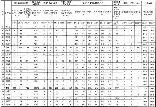 (三)工作目標。到2020年,基本建成與全面小康社會相適應的農村垃圾污水、衛(wèi)生廁所、村容村貌治理體系,實現農村人居環(huán)境明顯改善,村莊環(huán)境基本干凈整潔有序,農民環(huán)境與健康意識普遍增強。實現村莊規(guī)劃編制全覆蓋;化肥農藥使用量實現零增長;90%的村莊生活垃圾得到治理并基本建立日常保潔機制;85%的農戶用上衛(wèi)生廁所,生活污水亂排亂放得到管控;25戶以及100人以上的自然村通水泥(瀝青)路,村內主要道路基本硬化。
