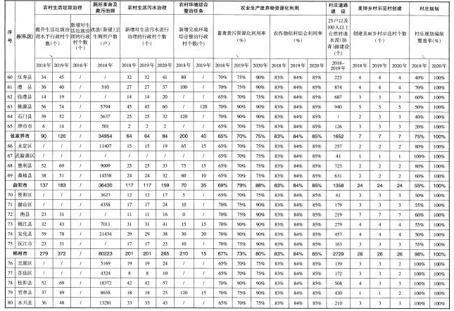中心城市城區(qū)和長株潭經濟強縣市區(qū)農村人居環(huán)境質量全面提升,所有村莊生活垃圾得到有效治理,垃圾分類減量和資源化利用全覆蓋,村莊日常保潔機制全面建立,農戶衛(wèi)生廁所普及率達到100%,廁所糞污基本得到處理或資源化利用,村內主要道路全部硬化,人居環(huán)境管護長效機制全面建立。