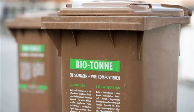 生物垃圾:這種棕色垃圾桶僅回收有機的、可制成堆肥的垃圾。其中包括剩飯菜、蔬果皮、雞蛋或干果殼、咖啡濾紙、茶葉袋,但也包括花園廢棄物例如樹葉和剪下的草坪。液體、煙蒂或紙尿布不可丟入這種棕色垃圾桶中。