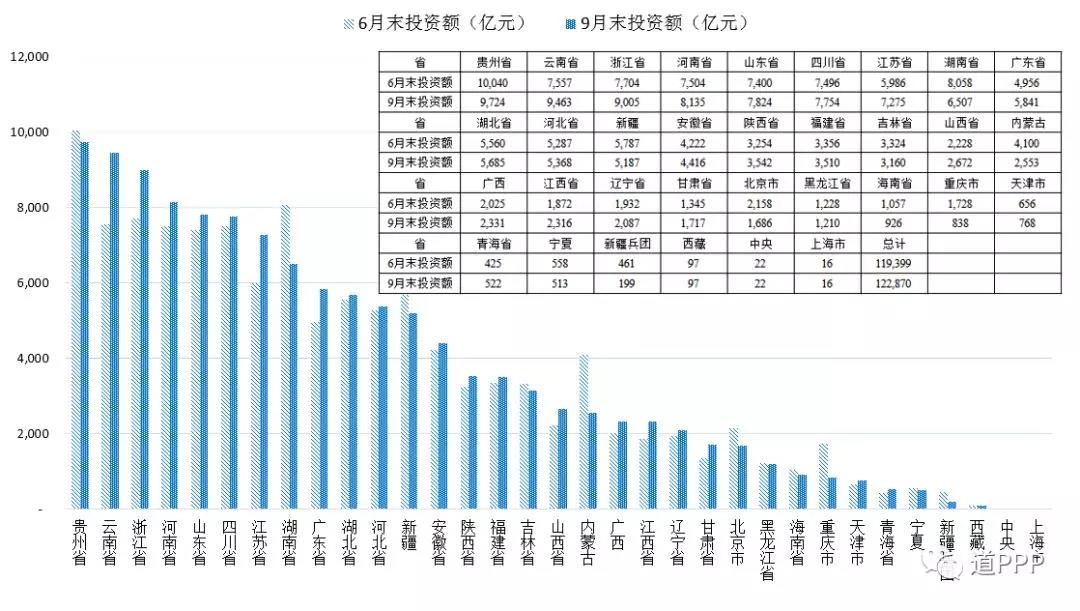 管理庫(kù)項(xiàng)目執(zhí)行情況:三季度(7-9月)管理庫(kù)環(huán)比二季度新增項(xiàng)目540個(gè)、投資額3,471億元;1-9月,管理庫(kù)新增項(xiàng)目1,152個(gè)、投資額1.5萬(wàn)億元;截至2018年三季度,管理庫(kù)累計(jì)項(xiàng)目數(shù)8,289個(gè)、投資額12.3萬(wàn)億元。落地項(xiàng)目,三季度管理庫(kù)環(huán)比新增落地項(xiàng)目421個(gè)、投資額3,135億元;1-9月,新增落地項(xiàng)目1,360個(gè)、投資額1.7萬(wàn)億元,落地率上升11.1個(gè)百分點(diǎn);管理庫(kù)累計(jì)落地項(xiàng)目數(shù)4,089個(gè)、投資額6.3萬(wàn)億元,落地率49.3%。三季度環(huán)比新增已開工項(xiàng)目174個(gè)、投資額1,015億元;管理庫(kù)累計(jì)已開工項(xiàng)目總數(shù)1,860個(gè)、投資額2.6萬(wàn)億元,開工率45.5%。地區(qū)方面,三季度環(huán)比新增項(xiàng)目數(shù)前三位是云南、廣東、江蘇,分別為113個(gè)、107個(gè)、63個(gè);三季度環(huán)比新增投資額前三位是云南、浙江、江蘇,分別為1,906億元、1,301億元和1,288億元;管理庫(kù)累計(jì)項(xiàng)目總數(shù)前三位是山東(含青島)、河南、貴州,分別為729個(gè)、642個(gè)、498個(gè);累計(jì)投資額前三位是貴州、云南、浙江,分別為9,724億元、9,463億元、9,005億元。行業(yè)方面,三季度環(huán)比新增項(xiàng)目數(shù)前三位的是市政工程、生態(tài)建設(shè)和環(huán)境保護(hù)、交通運(yùn)輸,分別是172個(gè)、132個(gè)、56個(gè);三季度項(xiàng)目環(huán)比新增投資額前三位是城鎮(zhèn)綜合開發(fā)、生態(tài)建設(shè)和環(huán)境保護(hù)、水利建設(shè),分別為1,615億元、372億元、305億元。管理庫(kù)累計(jì)項(xiàng)目總數(shù)前三位是市政工程、交通運(yùn)輸、生態(tài)建設(shè)和環(huán)境保護(hù),合計(jì)占管理庫(kù)項(xiàng)目總數(shù)的62.3%;累計(jì)投資額前三位是市政工程、交通運(yùn)輸、城鎮(zhèn)綜合開發(fā),合計(jì)占管理庫(kù)總投資額的72.2%。民企參與方面,4,089個(gè)落地項(xiàng)目中社會(huì)資本所有制信息完善的項(xiàng)目共4,018個(gè),涉及社會(huì)資本共6,753家,其中民企占35.3%;民資背景項(xiàng)目1,711個(gè)、投資額2.1萬(wàn)億元,分別占4,018個(gè)社會(huì)資本所有制信息完善的落地項(xiàng)目的44.8%和34.0%。消費(fèi)領(lǐng)域基本公共服務(wù)項(xiàng)目(文化、旅游、體育、健康、養(yǎng)老、教育等6個(gè)領(lǐng)域)管理庫(kù)累計(jì)項(xiàng)目數(shù)1,409個(gè)、投資額1.3萬(wàn)億元。污染防治與綠色低碳項(xiàng)目三季度環(huán)比新增項(xiàng)目326個(gè)、投資額1,014億元。管理庫(kù)累計(jì)污染防治與綠色低碳項(xiàng)目總數(shù)4,519個(gè)、投資額4.4萬(wàn)億元。長(zhǎng)江經(jīng)濟(jì)帶(上海、江蘇、浙江、安徽、江西、湖北、湖南、重慶、四川、云南、貴州)項(xiàng)目累計(jì)項(xiàng)目總數(shù)3,739個(gè)、投資額6.3萬(wàn)億元,分別占管理庫(kù)的45.1%和51.3%;累計(jì)長(zhǎng)江經(jīng)濟(jì)帶落地項(xiàng)目總數(shù)1,780個(gè)、投資額3.2