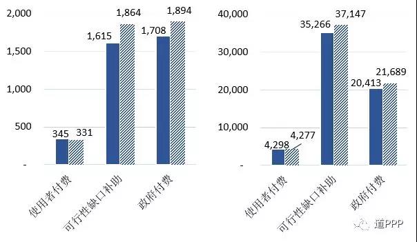 管理庫(kù)累計(jì)落地使用者付費(fèi)類項(xiàng)目331個(gè),投資額4,277億元;累計(jì)落地可行性缺口補(bǔ)助類項(xiàng)目1,864個(gè),投資額3.7萬(wàn)億元;累計(jì)落地政府付費(fèi)類項(xiàng)目1,894個(gè),投資額2.2萬(wàn)億元,具體如圖1-11-5、圖1-11-6。