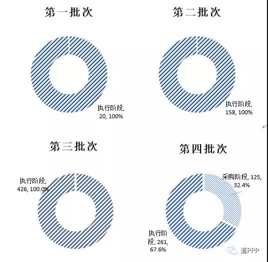 第一批20個(gè)示范項(xiàng)目自2016年底以來、第二批158個(gè)示范項(xiàng)目自2017年3月以來、第三批426個(gè)示范項(xiàng)目自2018年3月以來均已100%落地。第四批示范項(xiàng)目中落地項(xiàng)目261個(gè),落地率67.6%。四批示范項(xiàng)目各自落地率如圖2-2-2。