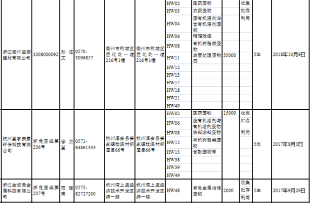 日前浙江省生態(tài)環(huán)境廳發(fā)布了《浙江省危險廢物經(jīng)營單位名單(2018年10月26日更新)》,涉及企業(yè)255家,并附有聯(lián)系電話。具體內(nèi)容如下:
