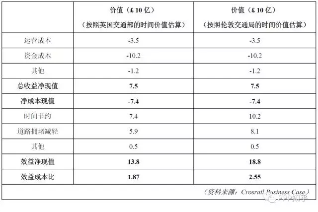 對(duì)于大型交通基礎(chǔ)設(shè)施的效益評(píng)估也會(huì)加入宏觀經(jīng)濟(jì)效益(wider economic benefits),對(duì)周?chē)貐^(qū)發(fā)展的帶動(dòng)效益包括進(jìn)來(lái),比如更高的集聚性和可達(dá)性帶來(lái)的額外就業(yè)機(jī)會(huì)、GDP、稅收效益。當(dāng)把宏觀經(jīng)濟(jì)效益包括進(jìn)成本效益評(píng)估之后,Crossrail的效益成本比會(huì)有所提高。