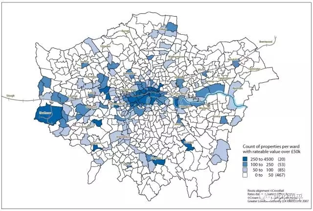 PPP模式可能使項(xiàng)目更加物有所值,公共預(yù)算支出更有效率,但單純依靠政府付費(fèi),財(cái)政可承受能力終歸是有上限的。因此,如何挖掘項(xiàng)目本身的商業(yè)潛力和拓展公共支出的來(lái)源就顯得尤為重要。大型基礎(chǔ)設(shè)施項(xiàng)目往往具有外部性,可以采用適當(dāng)?shù)姆椒▽⑵渫獠啃б鎯?nèi)在化,來(lái)反哺項(xiàng)目本身。橫穿倫敦108公里的伊麗莎白線的總建設(shè)預(yù)算達(dá)148億英鎊,計(jì)劃通過(guò)稅收增量融資和開(kāi)發(fā)基礎(chǔ)設(shè)施費(fèi)的模式來(lái)將地鐵帶動(dòng)的土地和物業(yè)價(jià)值升值反饋給軌道項(xiàng)目。一方面,在未來(lái)24-30年內(nèi),對(duì)該軌道項(xiàng)目收益的價(jià)值5.5萬(wàn)英鎊以上的商業(yè)物業(yè)額外征收2%的商業(yè)物業(yè)稅(BRS-Business Rate Supplement),如下圖所示。