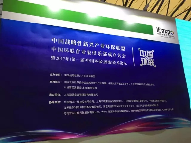 2017年5月4日,中國戰(zhàn)略性新興產(chǎn)業(yè)環(huán)保聯(lián)盟、中國環(huán)聯(lián)企業(yè)家俱樂部成立大會暨2017年(第一屆)中國環(huán)保(固廢)技術(shù)論壇在上海新國際博覽中心成功召開。