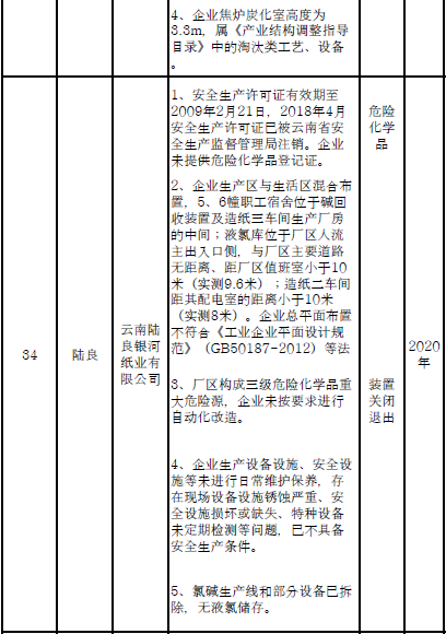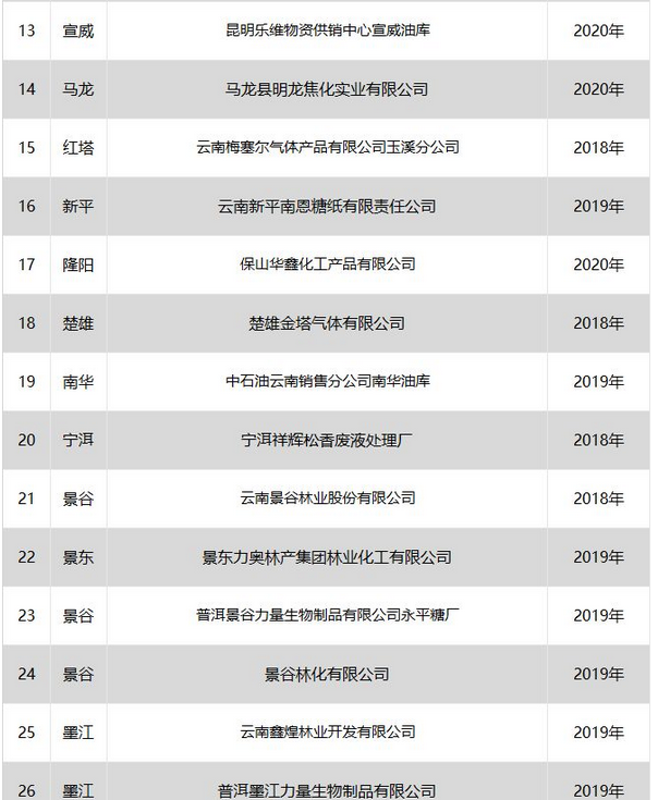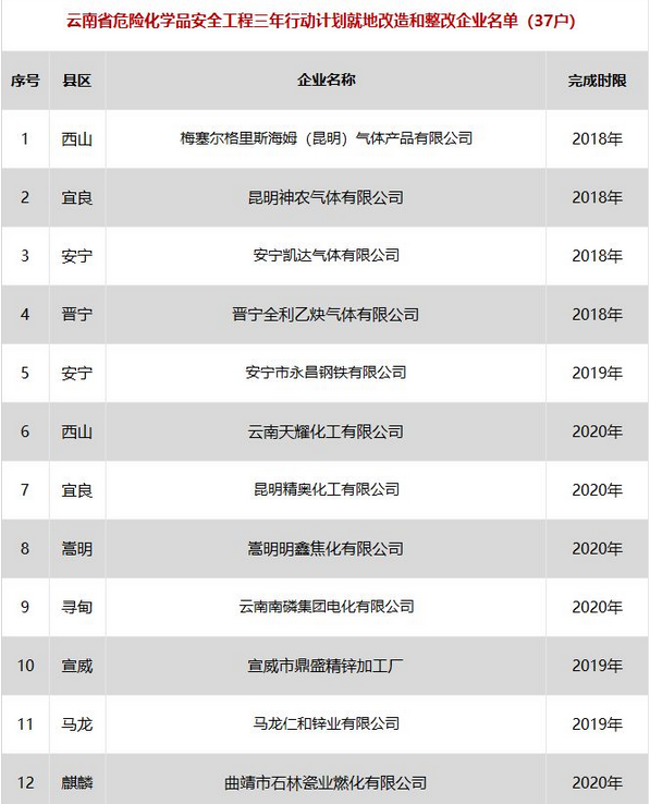日前云南省應(yīng)急管理廳發(fā)布了印發(fā)危險(xiǎn)化學(xué)品安全工程三年行動(dòng)計(jì)劃有關(guān)企業(yè)名單,明確關(guān)閉退出、就地改造、綜合整治的危險(xiǎn)化學(xué)品生產(chǎn)(儲(chǔ)存)企業(yè)名單。