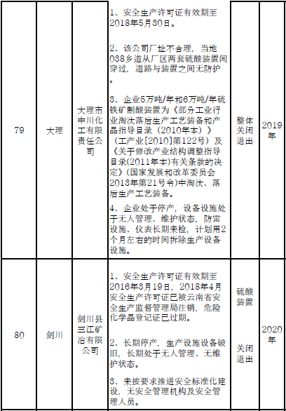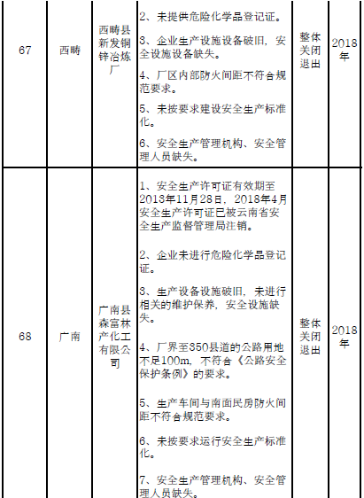 附件下載:1.附件1云南省危險(xiǎn)化學(xué)品安全工程三年行動(dòng)計(jì)劃關(guān)閉退出企業(yè)(裝置)名單(91戶).docx