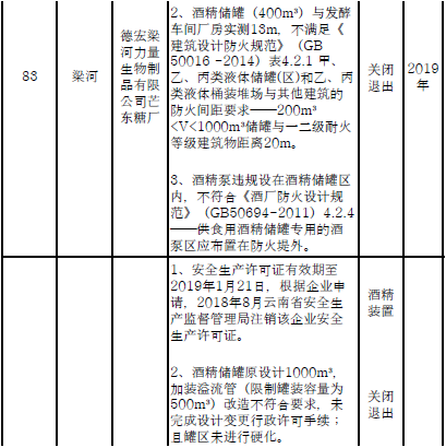五、涉及重點(diǎn)監(jiān)管危險(xiǎn)化工工藝的43戶企業(yè)、涉及重點(diǎn)監(jiān)管危險(xiǎn)化學(xué)品的107戶企業(yè)以及213個(gè)重大危險(xiǎn)源,各州市政府根據(jù)具體情況組織進(jìn)行整改。2019年10月底完成自動(dòng)化控制和安全儀表系統(tǒng)改造升級(jí)工作。2019年10月底,未單獨(dú)設(shè)置控制室的乙醇生產(chǎn)企業(yè)按照規(guī)程要求完成改造,酒精生產(chǎn)車間的易燃易爆氣體檢測(cè)報(bào)警儀與通風(fēng)風(fēng)機(jī)實(shí)現(xiàn)聯(lián)鎖。