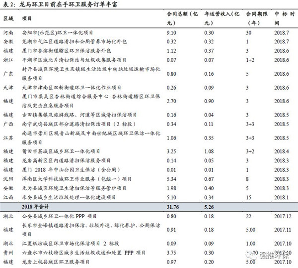 環(huán)衛(wèi)服務(wù)快速發(fā)展,在手訂單充足。公司從2015年開始開拓環(huán)衛(wèi)服務(wù)業(yè)務(wù),中標(biāo)??邶埲A區(qū)及沈陽渾南區(qū)項(xiàng)目標(biāo)志公司具備全國拓展環(huán)衛(wèi)服務(wù)業(yè)務(wù)的能力。截至目前,公司在手環(huán)衛(wèi)服務(wù)項(xiàng)目年化合同金額為14.80億元,合同總金額為140.83億元,充足的在手訂單是未來業(yè)績高增長的有力保障。
