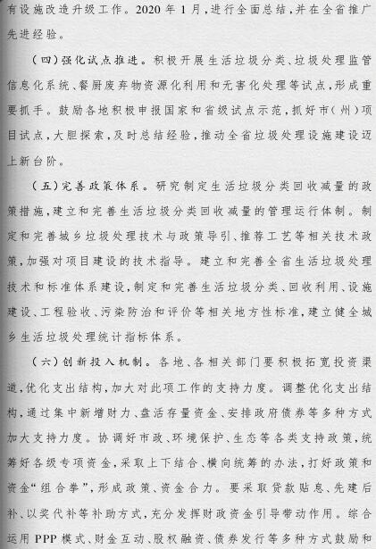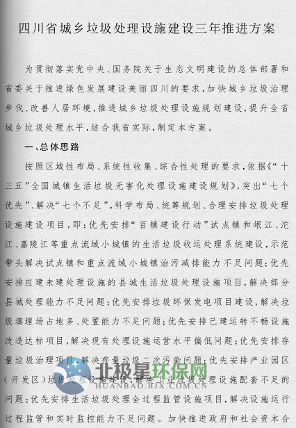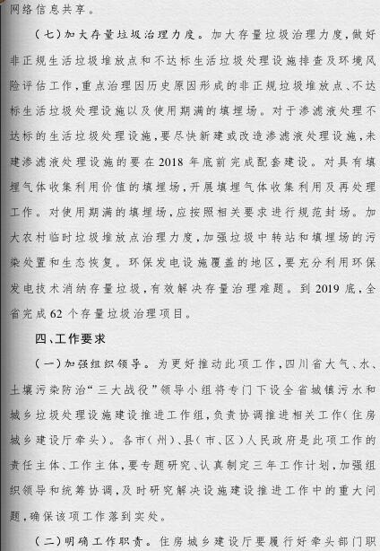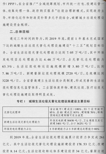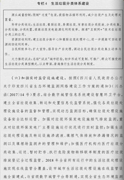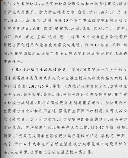 四川省政府印發(fā)了《四川省城鄉(xiāng)垃圾處理設(shè)施建設(shè)三年推進(jìn)方案》(以下簡稱《方案》)。《方案》提出,到2019年底,我省生活垃圾無害化處理能力將達(dá)7.05萬噸/日,生活垃圾處理設(shè)施累計投資力爭完成361億元,普遍建立生活垃圾分類制度,形成完善的生活垃圾處理信息化監(jiān)管體系。