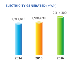 2016年錦江環(huán)境實現發(fā)電量增加16.6%,達到23.143億千瓦時,上網電量增加15.1%至17.097億千瓦時,供汽量增加35.7%至199萬噸。