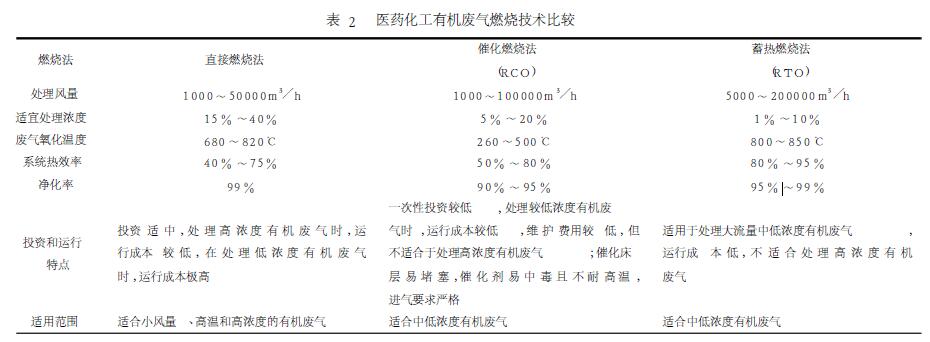 現(xiàn)階段,我國對醫(yī)藥化工行業(yè)揮發(fā)性有機廢氣的氧化治理技術主要包括:光催化氧化、直接燃燒法、催化燃燒技術及RTO等,各種處理措施針對醫(yī)藥化工有機廢氣存在一定優(yōu)劣性[2~5],具體匯總見表2。