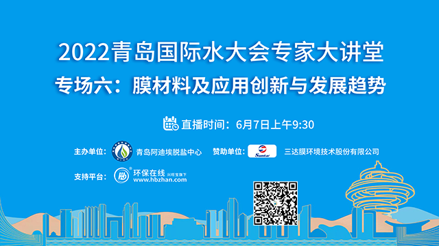 “2022青島國際水大會專家系列大講堂”接力第七場——凈水行業(yè)高端論壇將于6月14日上午登陸環(huán)保在線!緊跟海水淡化、工業(yè)節(jié)水與污水資源化、城鎮(zhèn)水務(wù)、水資源可持續(xù)、水環(huán)境治理、膜材料等議題的熱度,凈水行業(yè)的當下與未來,誠邀業(yè)界同仁共探共論。(點擊圖片,即...
