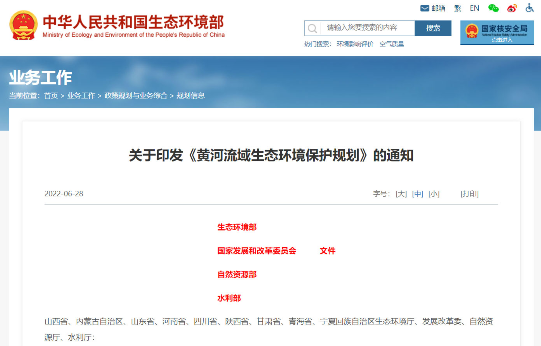 這份《規(guī)劃》,是指導黃河流域當前和今后一個時期生態(tài)環(huán)境保護工作,制定實施相關規(guī)劃方案、政策措施和工程項目建設的重要依據(jù)。為保障目標任務完成,《規(guī)劃》還部署了8大重點工程,分別是:水環(huán)境保護與治理工程、重點行業(yè)大氣污染治理工程、清潔取暖改造工程、移動源污染治理工程、土壤與地下水污染治理工程、生態(tài)保護修...