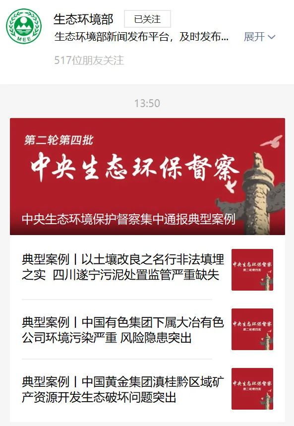 壹中央生態(tài)環(huán)保督察通報7起典型案例中央生態(tài)環(huán)保督察又通報典型案例了。9月6日下午,中央生態(tài)環(huán)保督察集中通報典型案例,對第二輪第四批督察發(fā)現(xiàn)的首批7起典型案例進(jìn)行集中公開通報。在這一批督察中,共組建了7個督察組,分別對吉林、山東、湖北、廣東、四川5個省,以及中國有色礦業(yè)集團(tuán)有限公司、中國黃金集團(tuán)有限公...