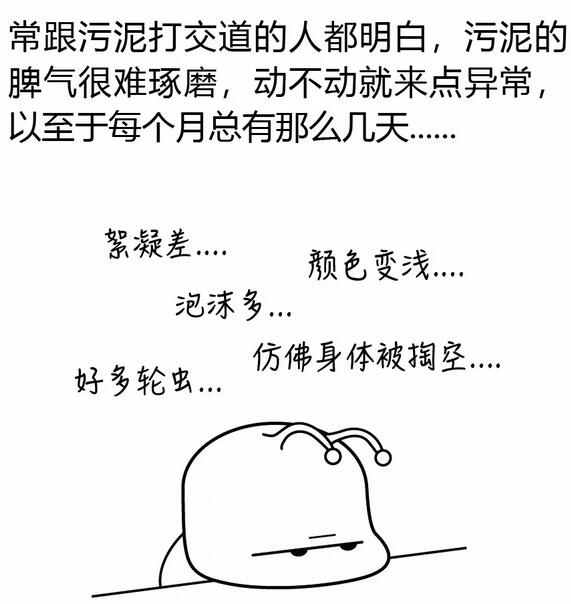 絮凝差、顏色變淺、泡沫多……常跟打交道的人都明白,這些異常就是典型的,至于污泥老化的原因及如何拯救老化的污泥,下面的漫畫(huà)就從的氧化代謝說(shuō)起,為您詳解如何拯救老化的污泥。其實(shí)最難的還是如何判斷出污泥老化了,畢竟有不少其他原因也能造成類(lèi)似的表象,這就需要大量的測(cè)量數(shù)據(jù)做基礎(chǔ),然后根據(jù)經(jīng)驗(yàn)在里面尋找蛛絲馬...