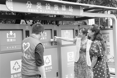 浙江推行“減桶并點”,優(yōu)化垃圾分類。圖為吳興區(qū)環(huán)渚街道某小區(qū),志愿者向居民宣傳即將投放的分類投放驛站。新華社記者 翁忻旸攝從去年開始,浙江省多個城市開始推行“兩定四分”的垃圾分類模式,拉開了以全品類垃圾治理為核心的“垃圾革命”,為全國推行垃圾分類工作貢獻(xiàn)了“浙江經(jīng)驗”。微風(fēng)徐徐,炊煙裊裊。干凈整潔的...