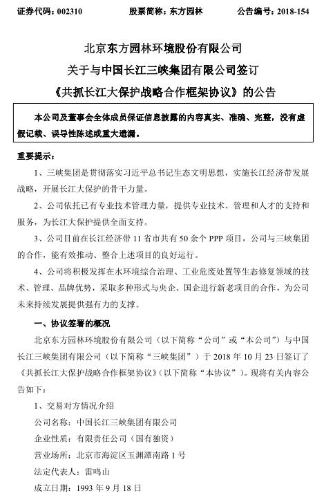 10月24日,公告,公司與長江簽訂《共抓長江大保護戰(zhàn)略合作框架協(xié)議》,雙方將通過多種合作模式,推動長江經(jīng)濟帶綠色產(chǎn)業(yè)經(jīng)濟運營合作;目前東方園林在長江經(jīng)濟帶11省市共有50余個,與三峽集團合作,并加入長江生態(tài)環(huán)保產(chǎn)業(yè)聯(lián)盟,能有效推動這些項目的良好運行。延伸閱讀: