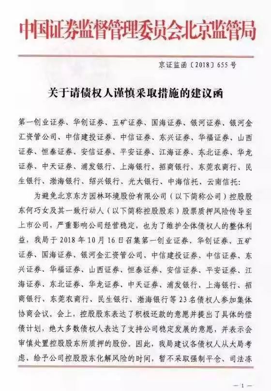 最近空降熱搜的企業(yè)中,有兩家公司成功吸引了天眼妹的目光。一家公司超級“大牌”,陷入股票質(zhì)押危機(jī)后,居然能震動北京證監(jiān)局出手相救;另一家公司更慘,法人和第一大股東因積壓的債務(wù)危機(jī)爆發(fā)被列為失信被執(zhí)行人。巧合的是,這兩家企業(yè)都是曾經(jīng)以“股王”“不差錢”等形象行走A股的?!本┳C監(jiān)局給債權(quán)人的建議函東方園...