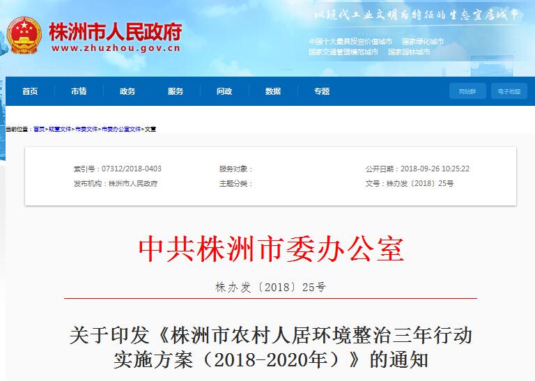 近日,市三年行動實施方案(2018-2020年)發(fā)布,詳情如下:中共株洲市委辦公室株洲市人民政府辦公室關(guān)于印發(fā)《株洲市農(nóng)村人居環(huán)境整治三年行動實施方案(2018-2020年)》的通知各縣市區(qū)黨委和人民政府,市直機(jī)關(guān)各單位、各人民團(tuán)體,各企事業(yè)單位:《株洲市農(nóng)村人居環(huán)境整治三年行動實施方案(2018-...