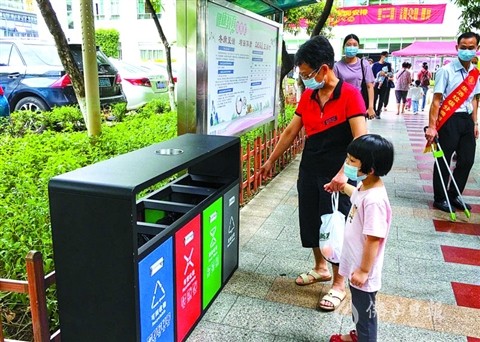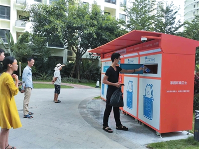 居民正在使用智能垃圾分類柜投放垃圾。符吉茂 攝“既環(huán)保,又能換錢,還能提高我們的垃圾分類意識和分類正確率,一舉多得,這個(gè)智能垃圾分類柜值得點(diǎn)贊?!?月26日,家住崖州區(qū)保利·崖州灣小區(qū)居民候東將一個(gè)礦泉水瓶投進(jìn)“大胃貓”智能垃圾分類柜后笑著說。日前,為助力三亞市生活垃圾分類工作,建設(shè)“無廢城市”,崖...