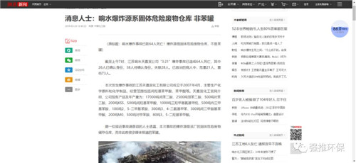 響水爆炸源或?yàn)槲U儲庫,企業(yè)自行處置危廢灰色地帶有望引發(fā)重拳執(zhí)法近日,針對響水爆炸事故,有文章指出,“據(jù)一位接近事故調(diào)查組的人士透露,本次事故的爆炸源是該廠的固體危險廢物儲存?zhèn)}庫,而非此前很多媒體報道的苯罐?!蹦壳斑@一報道,已被多家主流媒體轉(zhuǎn)載。這一質(zhì)疑涉及了環(huán)保危險廢物處置管理中的一個灰色地帶——...