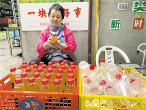 周茹府將環(huán)保酵素整理打包,準(zhǔn)備免費(fèi)發(fā)放給市民。用廢舊塑料瓶裝滿環(huán)保酵素,再將環(huán)保酵素知識(shí)貼粘至瓶身……經(jīng)過(guò)精心制作,環(huán)保酵素裝箱就可免費(fèi)發(fā)放給市民及游客。來(lái)自新疆的61歲“候鳥(niǎo)”老人周茹府是海口市美蘭區(qū)白沙門(mén)環(huán)保教育站的一名垃圾分類志愿者,這些環(huán)保酵素就是通過(guò)她裝瓶打包而成。在她眼里,做這些微不足道...