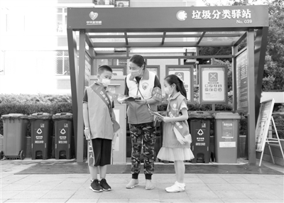 在北京市海淀區(qū)新科祥園社區(qū),社區(qū)工作人員(中)為“綠色明天”環(huán)保志愿小隊隊員李夢鴻一(右)、施柏涵介紹垃圾分類知識。新華社記者 任超攝住建部、生態(tài)環(huán)境部等6部委近日聯合印發(fā)《綠色社區(qū)創(chuàng)建行動方案》(以下簡稱《方案》),要求綠色社區(qū)創(chuàng)建要與居民自治機制建設、社區(qū)服務體系建設有機結合起來,營造社區(qū)宜居環(huán)...
