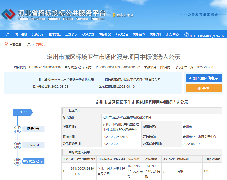 8月8日,超19億元的定州市城區(qū)環(huán)境衛(wèi)生市場化服務(wù)項目公布中標(biāo)候選人公示,河北昌潤達(dá)環(huán)境工程有限公司排名第一;8月9日,約5.5億元三河市城鄉(xiāng)環(huán)衛(wèi)一體化項目又被北京環(huán)境有限公司和北京首創(chuàng)環(huán)境投資有限公司攜手?jǐn)孬@。至此,河北省今年已開標(biāo)的億級環(huán)衛(wèi)項目總金額已超119億元,加上在招標(biāo)項目,河北省今年環(huán)衛(wèi)...