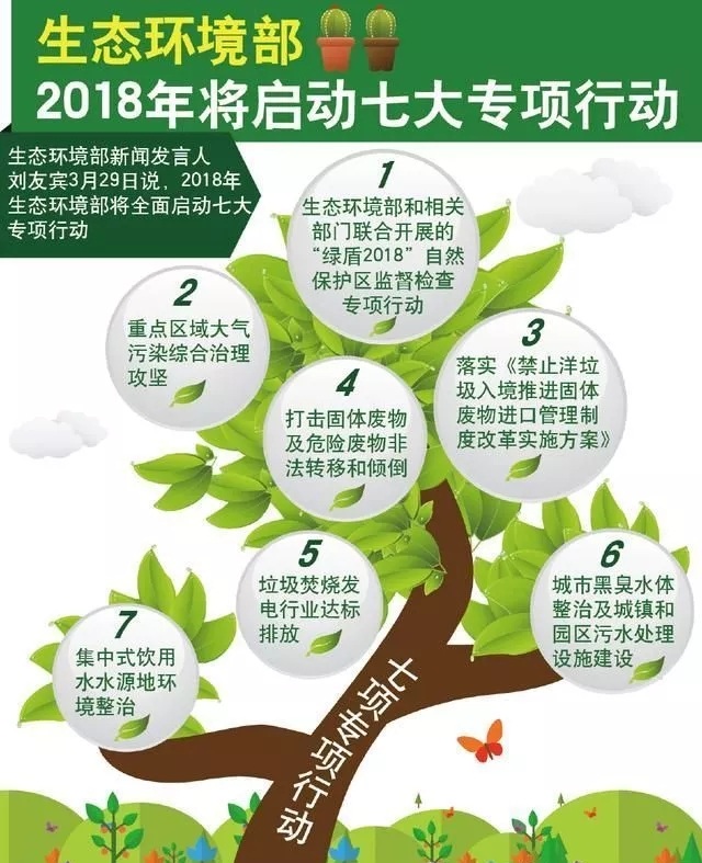 3月29日,生態(tài)環(huán)境部舉行了成立后的首場例行新聞發(fā)布會。新聞發(fā)言人劉友賓表示,中央環(huán)保督查工作將繼續(xù)推進(jìn)深化,再用三年左右時(shí)間完成第二輪中央環(huán)保督查全覆蓋。全面啟動七大專項(xiàng)行動,作為打好“污染防治攻堅(jiān)戰(zhàn)”的標(biāo)志性工程。來源:新華網(wǎng)、央廣網(wǎng)在當(dāng)天舉行的新聞發(fā)布會上,他介紹這七項(xiàng)專項(xiàng)行動是:這七大專項(xiàng)行...