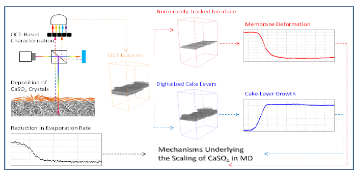 近期,南方科技大學環(huán)境科學與工程學院研究副教授李煒怡及合作團隊采用基于高端光學表征技術(optical coherence tomography,OCT)手段,對膜蒸餾過程中硫酸鈣的結垢行為進行了深度解析,為膜蒸餾的優(yōu)化設計建立了更為堅實的理論基礎。系列研究成果連續(xù)發(fā)表在水處理領域權威期刊Water...