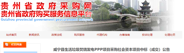 貴州省威寧縣生活垃圾焚燒發(fā)電PPP項目發(fā)布中標公告,河南富鑫投資有限公司(牽頭人)、臨安嘉盛環(huán)保有限公司和山東黃河建工有限公司組成的聯(lián)合體成為中標的社會資本方,中標金額為60元/噸。 10月26日,該項目發(fā)布招標公告,根據(jù)公告顯示,項目所在地位于畢節(jié)市威寧彝族回族苗族自治縣五里崗辦事處,X782道路...