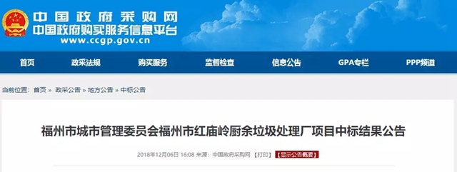日前,從中國(guó)政府采購(gòu)網(wǎng)獲悉,福建首個(gè)廚余垃圾處理PPP項(xiàng)目--福州市紅廟嶺廚余垃圾處理廠項(xiàng)目(以下簡(jiǎn)稱福州項(xiàng)目)中標(biāo)結(jié)果出爐,首創(chuàng)環(huán)境控股有限公司聯(lián)合體以261元/噸中標(biāo)價(jià)成功將項(xiàng)目攬入懷中。 福州項(xiàng)目是福州市垃圾分類的終端處理設(shè)施——紅廟嶺循環(huán)經(jīng)濟(jì)生態(tài)產(chǎn)業(yè)園區(qū)的重要組成部分...